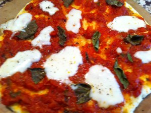 Next was Pizza Margareta, which includes homemade marinara sauce, fresh basil leaves, buffalo mozzarella (usually packed in water) and parmesan cheese. I made the pizza crust from a CPK (California Pizza Kitchen) recipe, which was good, but not quite like the crust in Italy. I used a pizza stone, which helped to crisp it nicely. However, I must say that pizza cooked in a brick oven is way better! Maybe I’ll have to get one of those. I am still in search of the perfect Italian pizza dough recipe and when I find it, you can be sure that I will post it on this blog! You can get pre-made dough at Trader Joes for only 99 cents which is a great price and convenient when you are in a hurry.