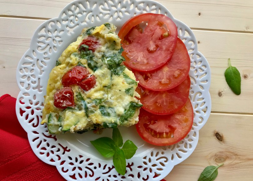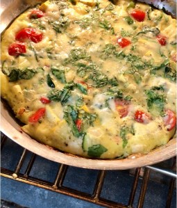 One of the best ways I find to feel satisfied during the day, is to eat a bunch of vegetables. But what about protein? Add some feta cheese, eggs or just egg whites and you have a meal aka a “frittata”. What is a frittata you ask? Well, it’s an Italian egg dish like an omelette, which is finished in the oven. Unlike a traditional omelette, the ingredients are cooked within the egg mixture.