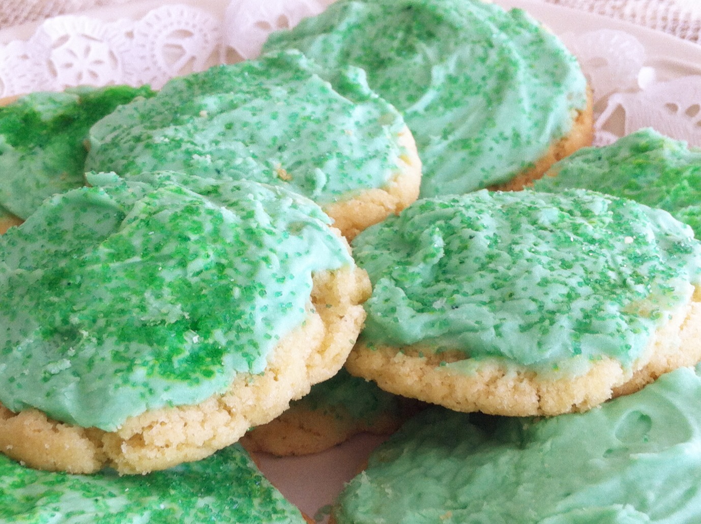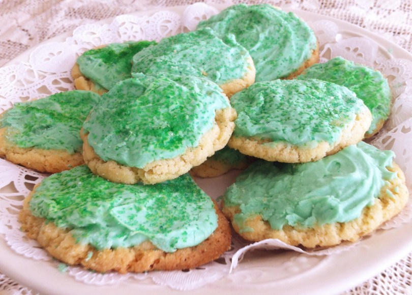 My husband actually stopped in once on a business trip to NY and said their treats were very tasty indeed.  So when you go to New York, be sure to check out Billy’s Bakery.  Or you can visit their website.  I hope you enjoy these sugar cookies as much as we do.  They are de-licious!  My son Billy made the batch in the photo and I made the green frosting in honor of St. Patrick’s Day–Enjoy!!