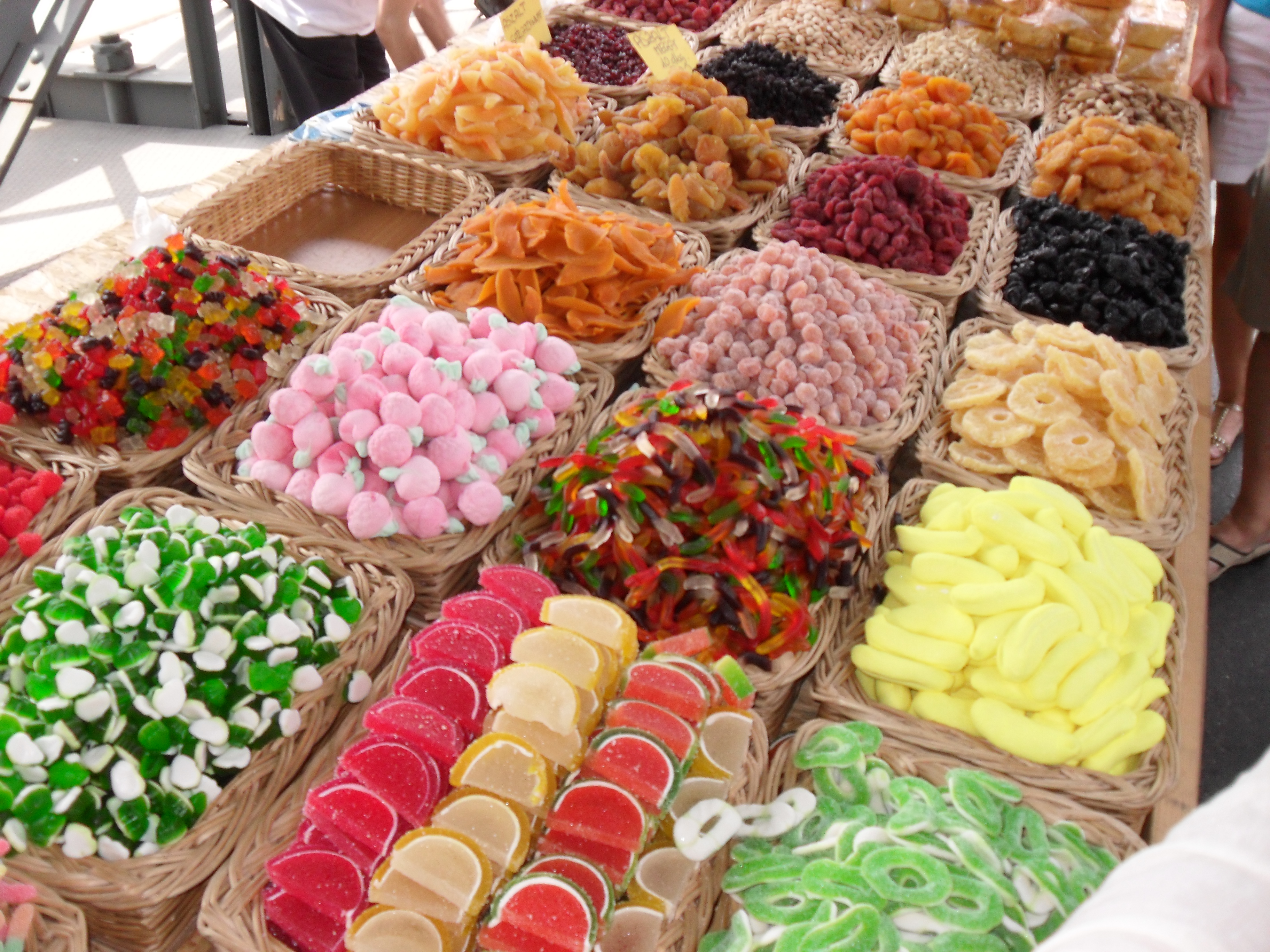 There were several vendors and food stands. One had all kinds of dried fruits and gummy candies ready to be purchased by the pound. I kind of wondered about flies, but never saw any.