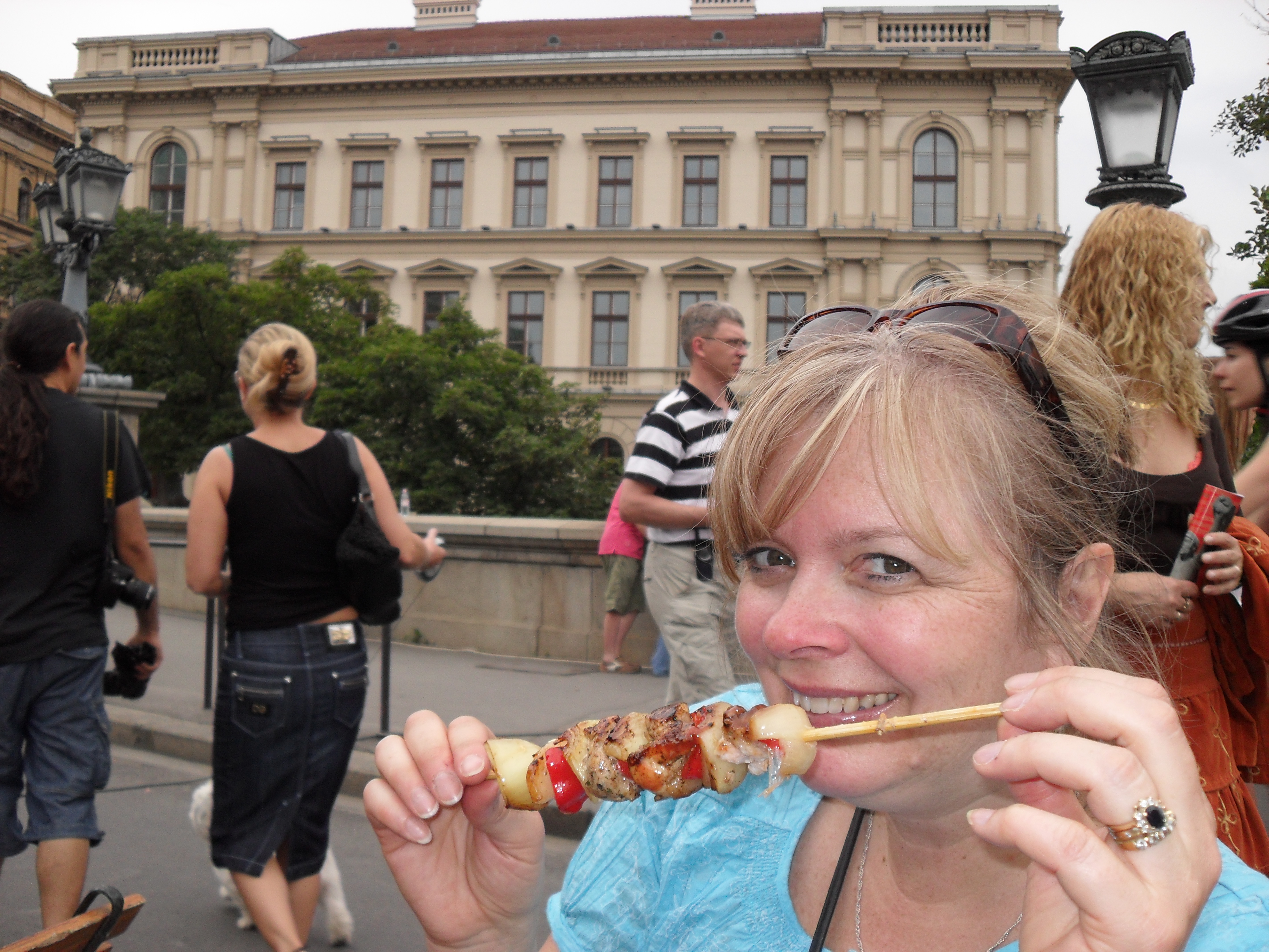 Me eating a chicken kebab fresh off the grill in Budapest, Hungary!