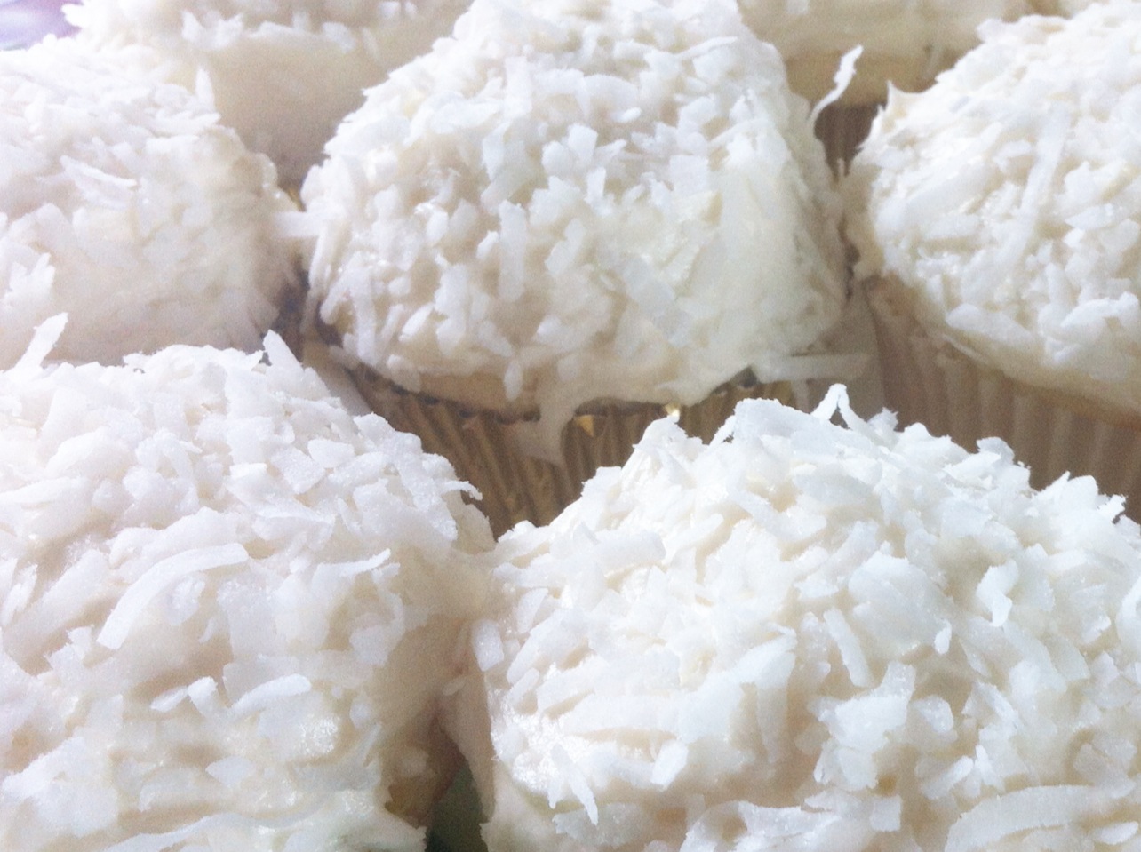 Then it happened…the other day, two friends and I went to a lunch place where they have really yummy food. You know the type…soups, salads, sandwiches and the “piece-de-resistance”, coconut cake that is so tasty, it sells out before 11:00 am! Both friends told me this was the best coconut cake they have ever tasted hands down. My objective became to personally improve upon said cake and make them wish they had never made such a declaration! So one day I called ahead to reserve a piece of this ‘bit-o-heaven on earth’…but the restaurant only had cupcakes. Not a problem, I picked up 3 and had my friends bring their milk. Yes, these cupcakes were good; small but very tasty indeed. Well this caused my competitive juices to start flowing and back into the kitchen I went…