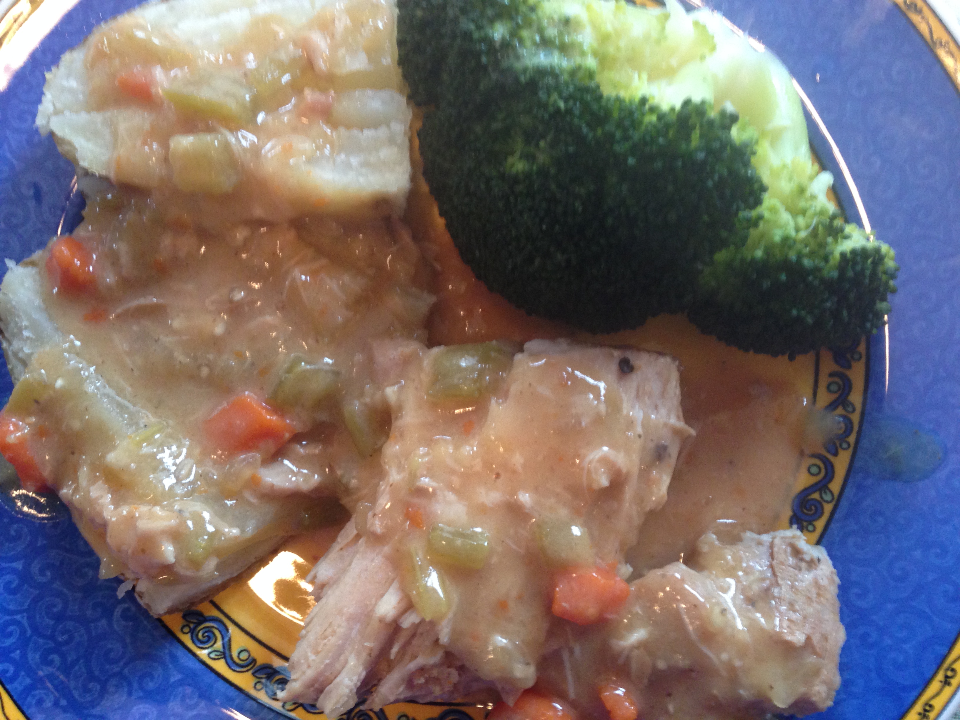 Sunday dinner – pork roast, baked potatoes and broccoli