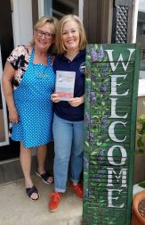 The owner and chef, Ellen Hundt, believes “there is no love sincerer than the love of food,” and it shows!  She bought this business back in 2017 and has added her own twists to the recipes she inherited from the previous owners.  Her love of baking came from her mom and neighbors.  As she started having children, she took a Wilton cake decorating class so that she could make awesome cakes for her kids.  She just kept baking over the years and got better and better.  She enjoys listening to music while she bakes, a tradition started by her mother when Ellen was growing up. They always sang when they baked and in fact, couldn’t make Christmas cookies without carols.  She continues this tradition today by cranking up the tunes and singing along!  Ellen is on the left with her friend Julia, who designed the Welcome sign and bought the first cookbook, hot off the press!