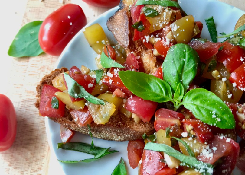 Did you know that tomatoes are very good for us?  In fact, they are the major dietary source of the antioxidant lycopene, which has been linked to many health benefits, including reduced risk of heart disease and cancer. They are also a great source of vitamin C, potassium, folate, and vitamin K.  If I was you, I would eat more tomatoes starting with this bruschetta!