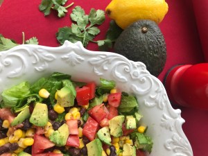 Over the years, we’ve all benefited from Cynthia’s sandwich and salad making skills.  In fact, for Mother’s Day, she made me this delicious BBQ Ranch Chicken Salad.  She’s not a big salad lover, but this is one of her favorites.  It certainly made my day with lots of fresh ingredients including: chicken, romaine, tomatoes, corn, black beans and cilantro.  She added grated cheese, Fritos, ranch dressing and BBQ sauce on top, and it was hearty and delicious-yum.  I hope you enjoy it as much as I did and thanks to Cynthia for sharing her recipe! So excited to share my daughter, Cynthia’s tasty salad recipe!  What’s at the root of this food?  Love, nutritious deliciousness and a full stomach…