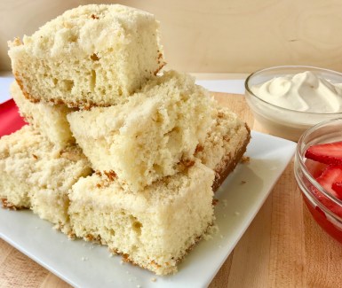 It is called ‘Baked-In Shortcake’ because, if desired, you can slice strawberries over the batter before adding the topper and then bake it.  The recipe was given to Gaylene when she worked in Building Operations and Maintenance for The Los Angeles Department of Water and Power back in 1964.  The Assistant Chief Security Officer was James Henry and he shared this favorite family recipe with her.