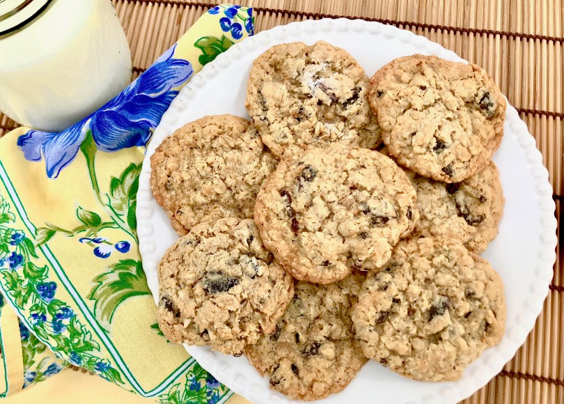 My sister-in-law, Cindy Bugg, makes the most delicious oatmeal raisin cookies for my husband, Bill’s birthday and other special occasions. I’m not kidding when I say they are his absolute favorite cookie! Since he loves them so much, I started baking them too. He especially enjoys the raisins which I increase over the original recipe and he says there still aren’t enough raisins per cookie!