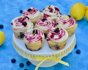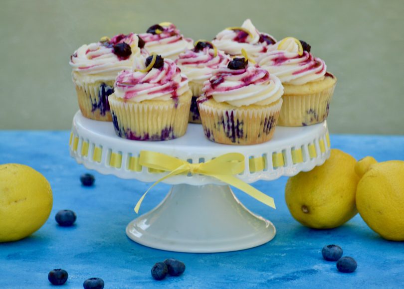 Zesty lemon cupcakes baked with fresh blueberries, topped with a slightly tart lemon buttercream, drizzled with sweet blueberry sauce and garnished with more lemon zest. It doesn’t get any better than that my friends!