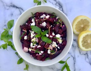 I’m sure you’ve all had beets at salad bars (back in the day). However, it’s a whole new experience to eat freshly harvested beets instead of the ones from a can or jar!! So when you see fresh beets grab them and make Beet Salad. With spicy mint leaves, tangy lemon zest, creamy feta cheese and honey lemon-dijon dressing, you just can’t ‘beet’ it!