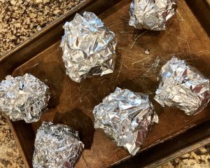 - Beets may get a bad rap…but this method is a good wrap! Preheat the oven to 400º. Cut off the ends of the beets and wrap each one in aluminum foil; place beets on a sheet pan. Roast them for 50-60 minutes or until fork tender. Depending on the size, some may be finished before others so just check the smaller ones at about 45 minutes. Remove from oven, unwrap beets and set aside to cool.