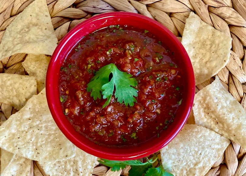 Serve my Fresh Salsa with your favorite Mexican food, on top of cottage cheese or a baked potato, with scrambled eggs or tortilla chips – or just eat it with a spoon!