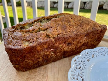 Yes, I had to make it without the streusel topping, chocolate chips and walnuts because I’m pre-diabetic…but just look at those tempting slices of banana bread!