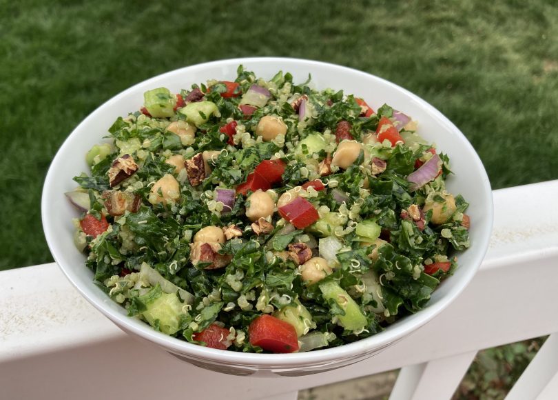 • If you prefer the raw kale to be soft, massage the leaves with 1 tablespoon olive or avocado oil after chopping and before adding other ingredients.