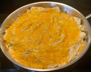 One Sunday Tim was over for dinner and I was low on groceries. Oh no, I thought, how do I feed this hungry man something filling and comforting? I opened the frig and surveyed what I had on hand…corn tortillas, a rotisserie chicken, cream cheese, greek yogurt, grated cheddar cheese and a can of green chilis. That’s when I decided to take a stab at gluten-free chicken enchiladas. Instead of using cream-of-chicken soup (which is not GF), I made my sauce from scratch which was creamy and delicious, no-one even noticed the difference.